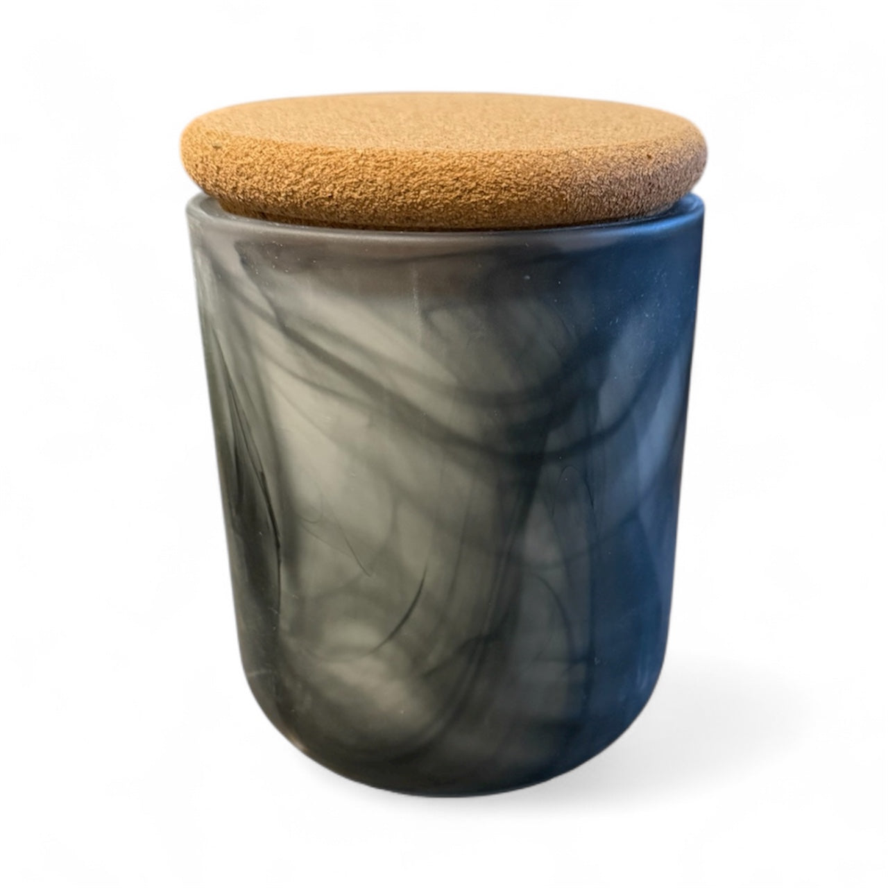 Hand-poured 100% soy candle in a glass jar with decorative 'mama' design and cork lid for a natural, aesthetic touch. Features a warm amber musk and woodsy scent—perfect for cozy moments or gifting. Can come with or without ‘mama’